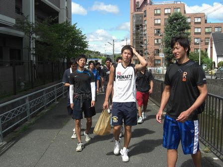 ![]() 普段から鍛えている選手についていけていない、マネージャー達を、西村君が引っ張っていってくれました |