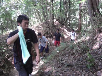 ![]() 左から岡西君・大賀君・尾上君・中尾君です。 道も徐々に狭くなってきており、選手の表情も だんだん険しくなってきました。 |