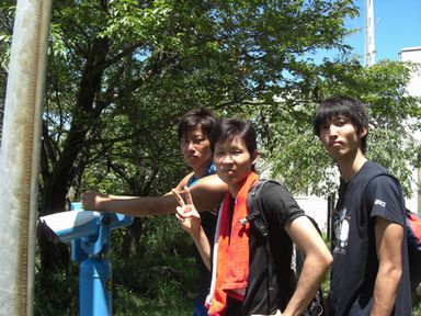 ![]() 左から浅田マネージャー・前川マネージャー・中山マネージャーです。前川マネージャーは元陸上選手ということもあり、ハイペースで登っていました。 |
